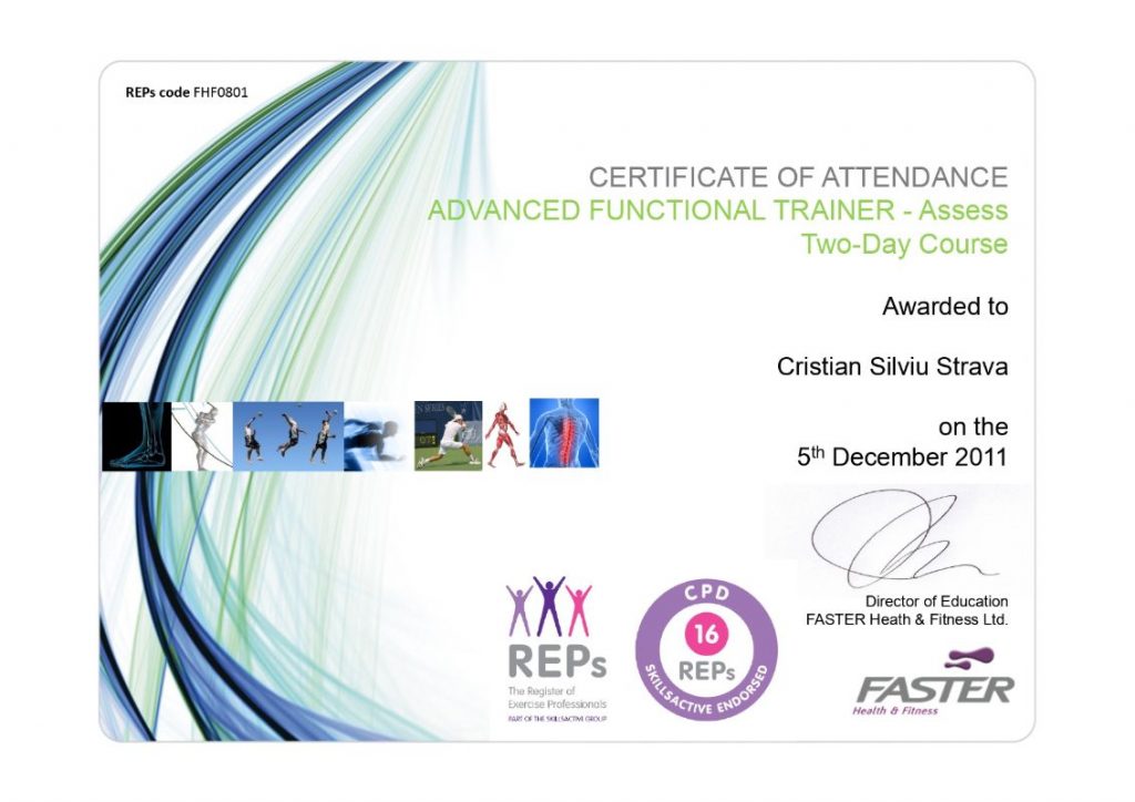 În prezent este Preparator Fizic pentru sportivi de performanță precum Ion Pascu, Dinu Bucalet și Formator Antrenori, Speaker, Antrenor Personal și Coordonator Programe al echipei HUMAN.